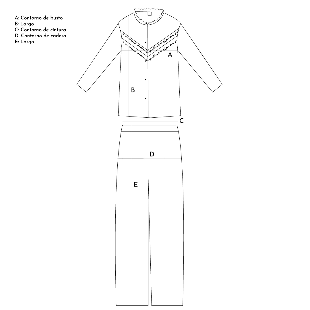 Camisa manga larga y pantalón largo, con vivo pijamero en bolsillo, mangas y piernas.